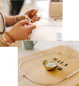 All pieces of jewelry are designed in our studio and lovingly hand-crafted there. The positive working atmosphere is also reflected in our products, so that in the end you will have a piece of jewelry in your hands that will accompany you on your journey and make you shine every day.